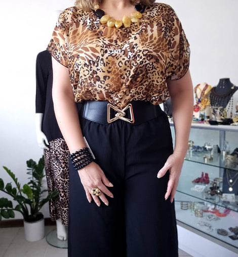 Animal Print Ballon Sleeves Blouse