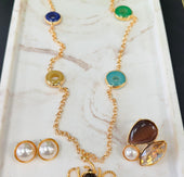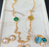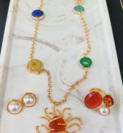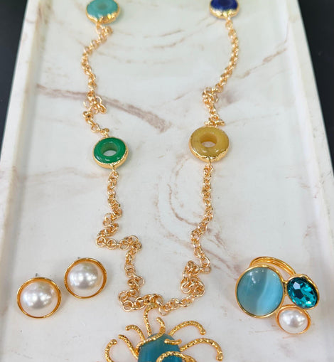 Diseñado con baño de oro y piedras semipreciosas en tonos vibrantes, este set es perfecto para la mujer que quiere verse sofisticada… sin esfuerzo.