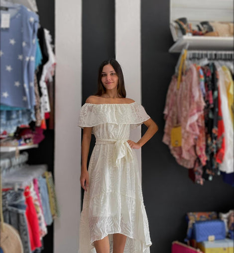 • Valeria Embossed Embroidery Hi Low Maxidress
